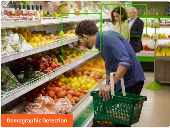 AI detects and classifies individuals based on age, gender, and other attributes.